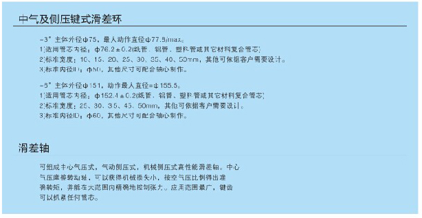 1.可組成中心氣壓式、氣動側(cè)壓式、機械側(cè)壓式高性能滑差軸,分切卷料窄、承重量大、適應性強